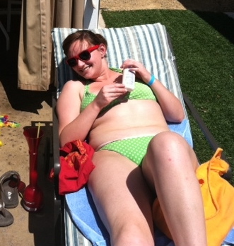 It was around this time that I met my husband, Cameron. After a few weeks of dating he invited me on a trip with his friends to Vegas. Here I am on that trip, testing the tensile strength of my bikini poolside: